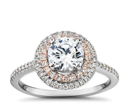 Two-Tone Petite Double Halo Engagement Ring in 14k White and Rose Gold